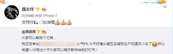 11月1日,罗志祥公开转发女友周扬青微博并称:“支持你,加油喔。”