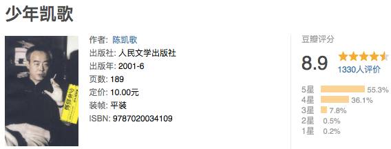 1991年,陈凯歌出版自传体文学《少年凯歌》,并被香港中文大学收录到“人一生必读的书单”中。