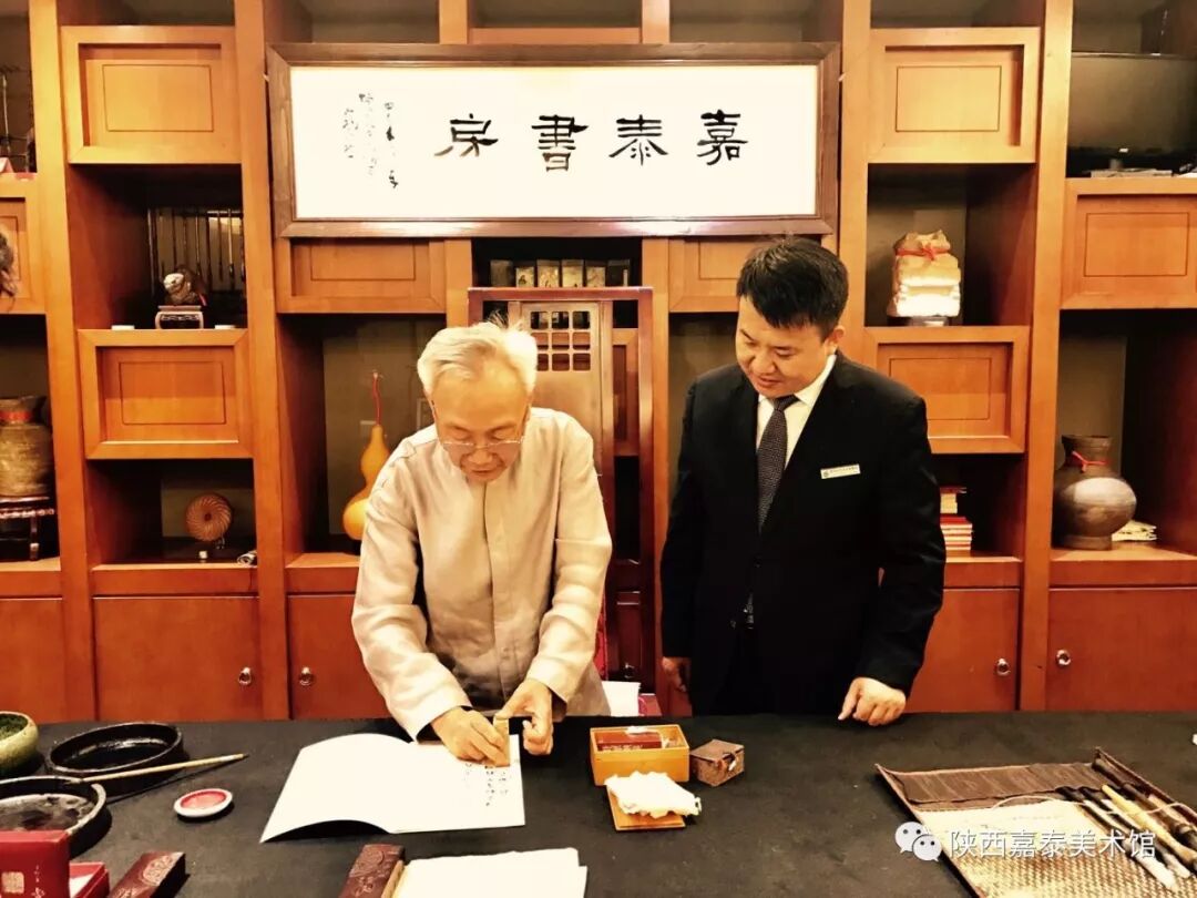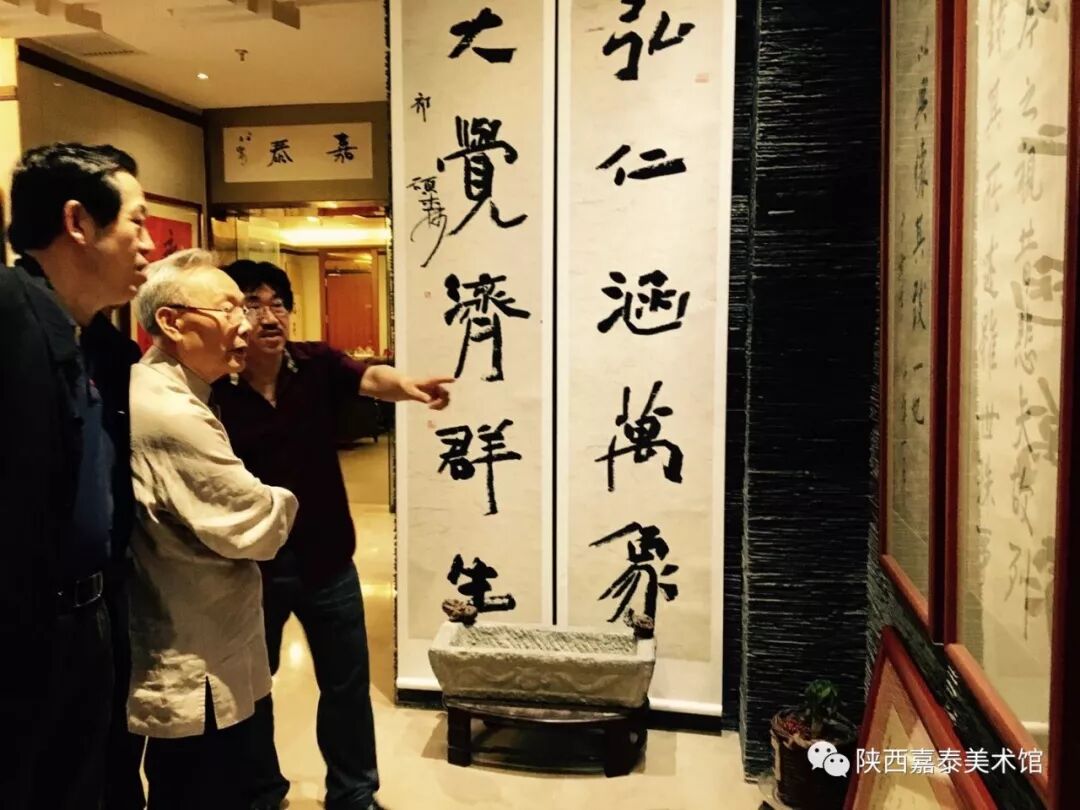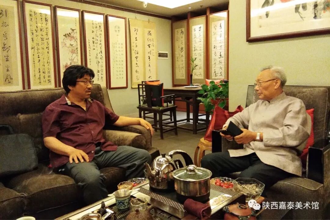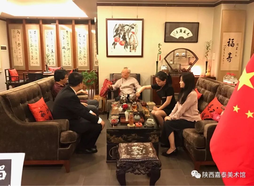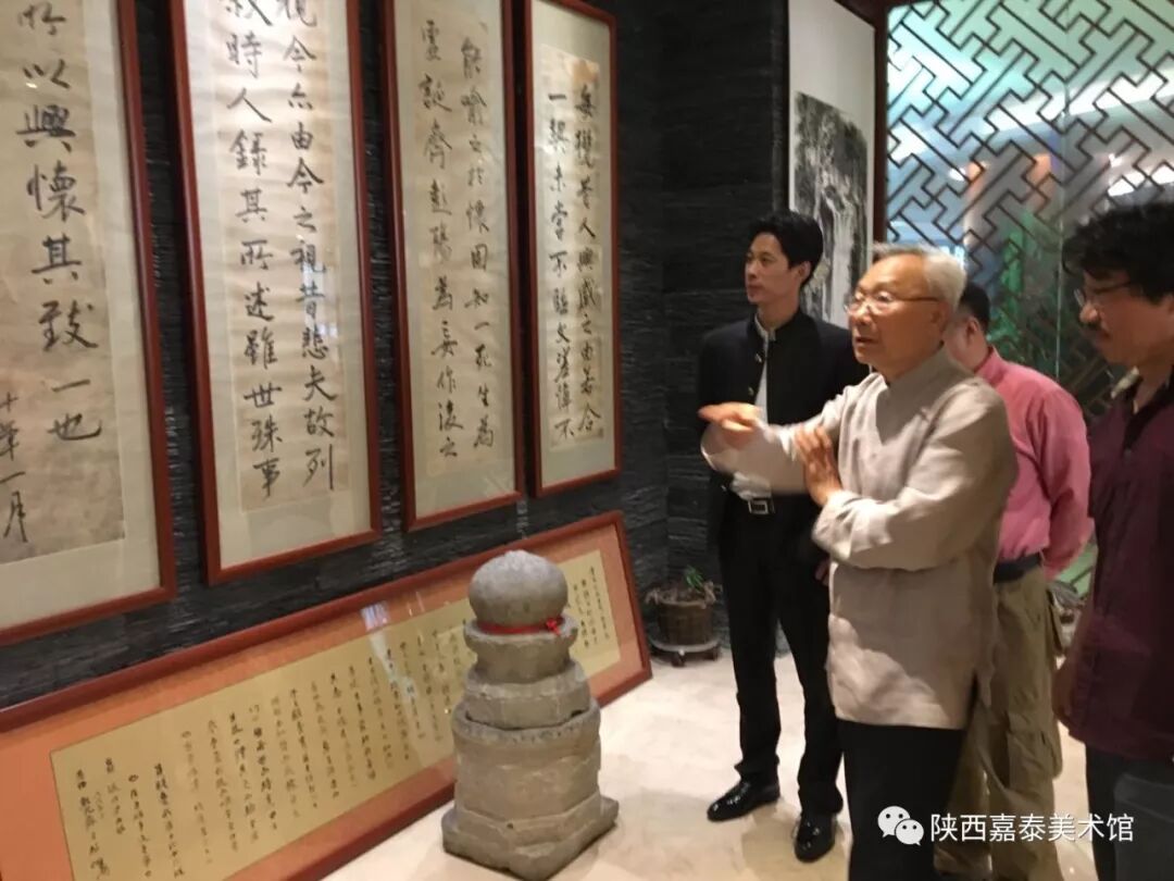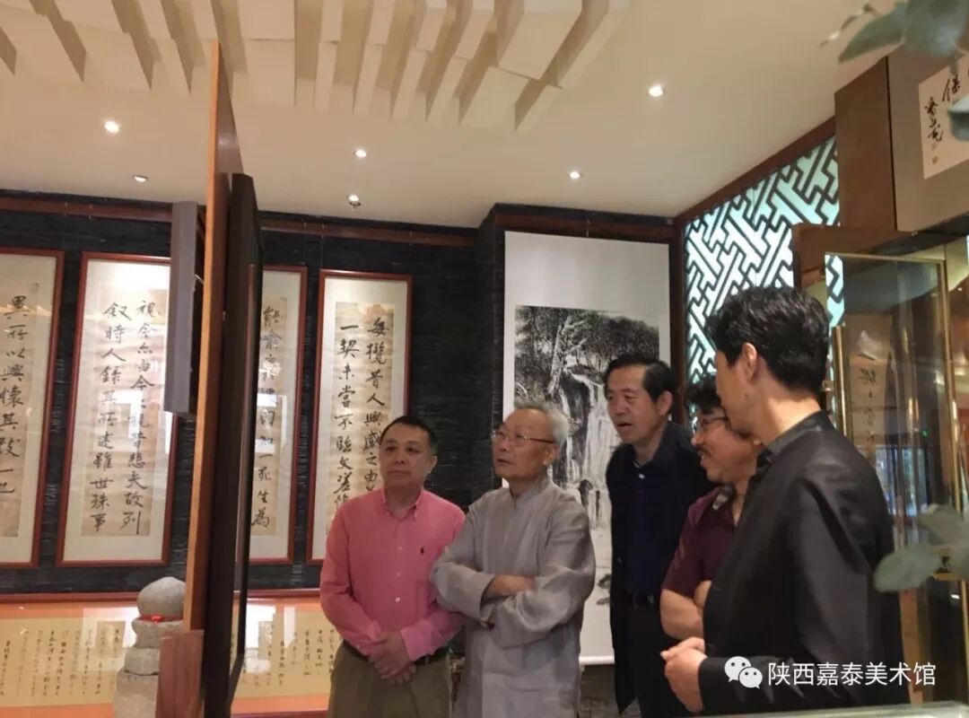 在长达近两个小时的交谈中,著名书画策展人陈北文先生,榆林市靖边县政协主席贺启鹏先生,北京中易文星雕塑院副院长李炅旻先生,西安市机电职业技术学校教务处主任赵容女士,西安德风堂画廊总经理鲁光宏先生以及陕西青年书画家朱媛女士等嘉宾纷纷表达了自己对书法艺术的理解与看法,随后赵学敏、祁硕森一行对陕西嘉泰美术馆馆藏书画作品进行了详尽的观摩和指导。