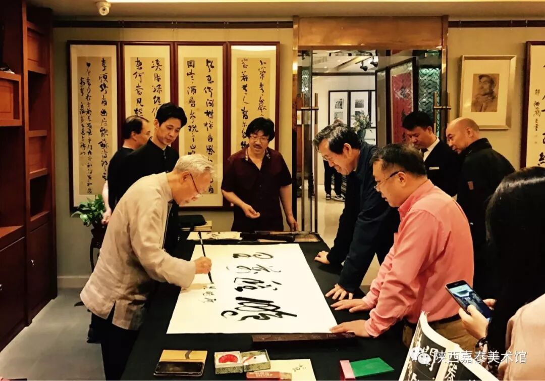 国华快讯:2018年5月4日青年节下午,在陕西嘉泰美术馆馆长张觉天先生邀请下,全国知名书法家、诗人,现任全国政协书画室副主任、中国书协第四、五、六届理事赵学敏老师从北京来到西安,莅临西安广成大酒店,走进陕西嘉泰美术馆进行学术指导。《草书学刊》《陕西书法志》主编祁硕森先生,著名书画策展人陈北文先生,榆林市靖边县政协主席贺启鹏先生,北京中易文星雕塑院副院长李炅旻先生,西安市机电职业技术学校教务处主任赵容女士,西安德风堂画廊总经理鲁光宏先生,陕西青年书画家朱媛女士等嘉宾出席,在西安广成大酒店常务副总经理何文权先生以及陕西嘉泰美术馆张馨文女士、曹慧慧女士等人的陪同下,欢聚一堂畅述书法艺术并进行现场笔会活动。