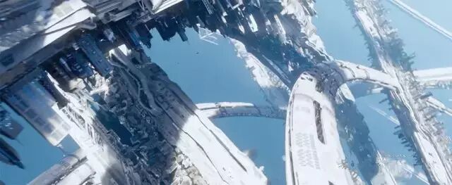 电影中,最大的亮点莫过于约克城——最大的航天站形似“盗梦空间”中的置景一般,也许一些理工科的同学们也要颠覆既有的认识了,在那样一个人工的巨大航天站,几乎就是另外一个地球世界了,重力方向几乎随心所欲,楼宇建筑张牙舞爪的四面伫立,所以,就这样的硬科技来说,真的算是吸引人。这又是一部玩转重力的电影,最后的正邪对决,同样是无视重力的,换个方向接着来,特别动画,包括那朝向各种方向的建筑,一个完全的未来世界。