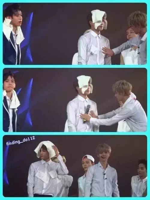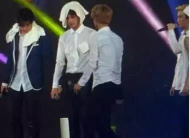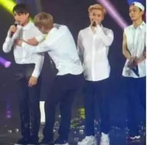 演唱会上,队友衣服湿了意外漏点。不过,一旁的好兄弟鹿晗发现了这一状况。随后,鹿晗笑着伸出双手挡在KAI的身前,帮他遮住了两点。