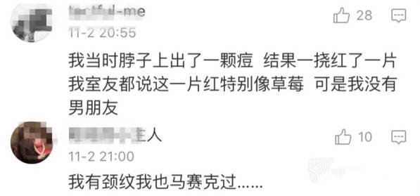可能是因为手机屏幕马得太彻底,所以更多的关注就放在脖子上了,好多人说是吻痕,也是真敢猜!