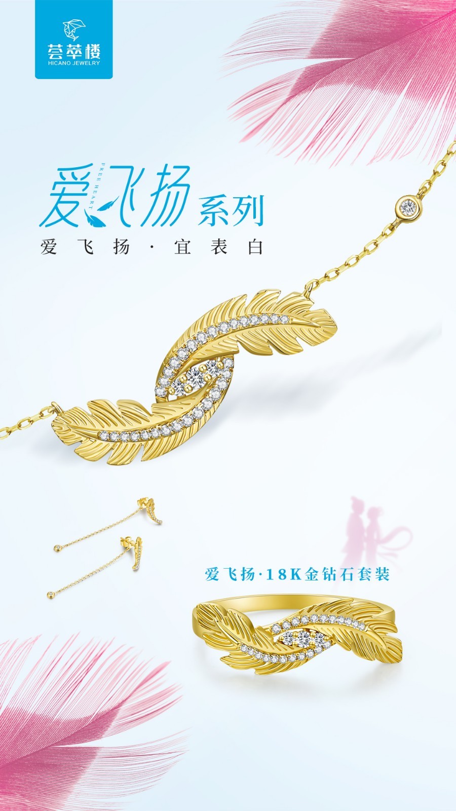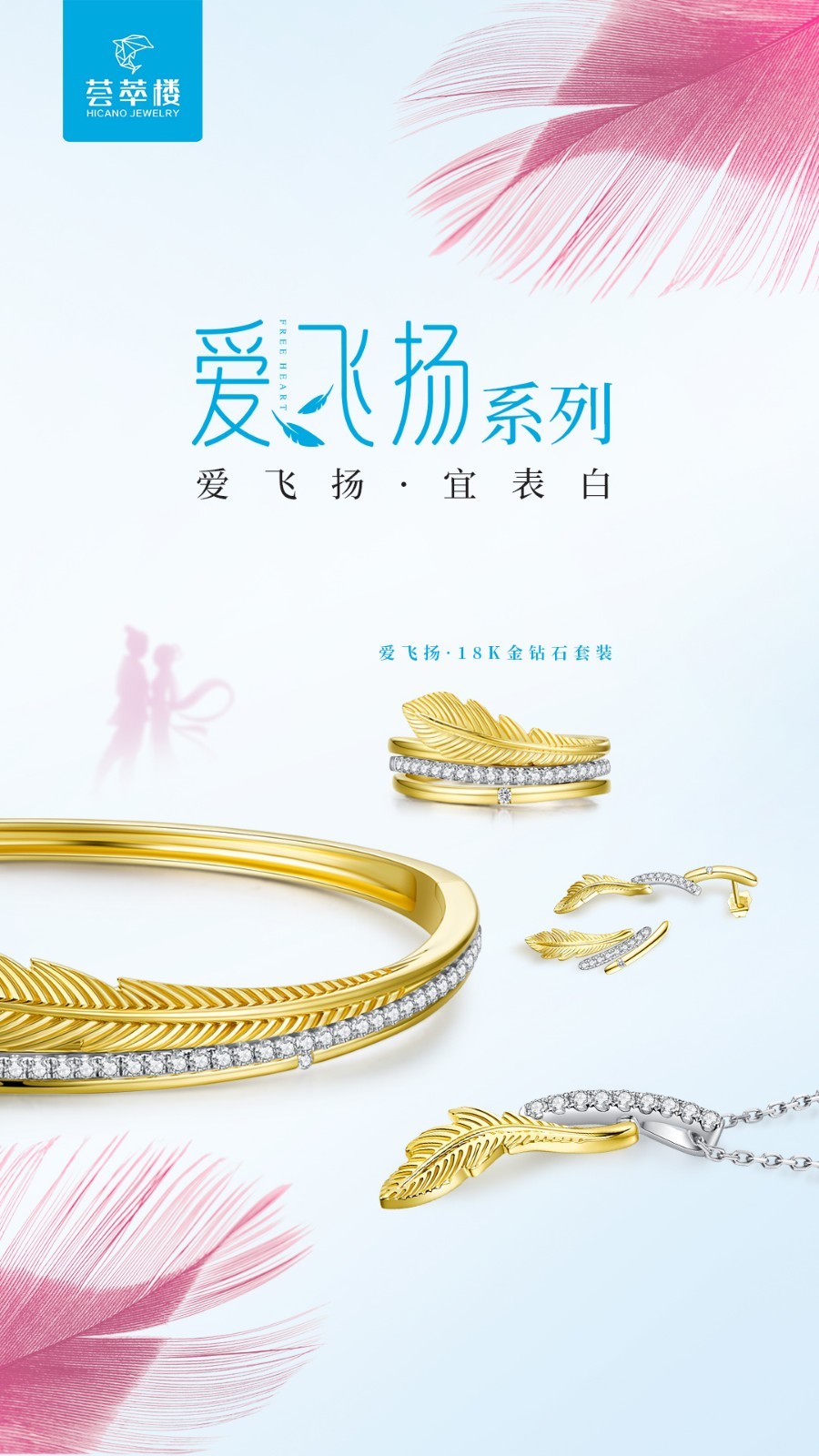 「爱飞扬」系列是荟萃楼珠宝年度最新力作,于七夕节前C位上市。「爱飞扬」系列以美丽高雅的白鹭为设计灵感,以纯手工传统意大利工艺精雕羽毛肌理打造,完美塑造了其自然柔美的羽毛造型;轻逸灵动的造型不仅呈现了现代女性身心轻盈、自由随性的状态,同时意在通过首饰语言来传递女性的真善美。